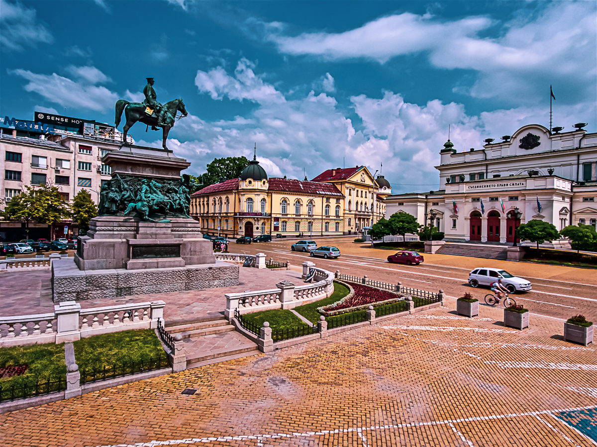 Stand directly across the square and take in the perspective: The Parliament, the statue of Tsar Liberator, and the Nevsky Cathedral form a visual triangle of politics, and spirituality.